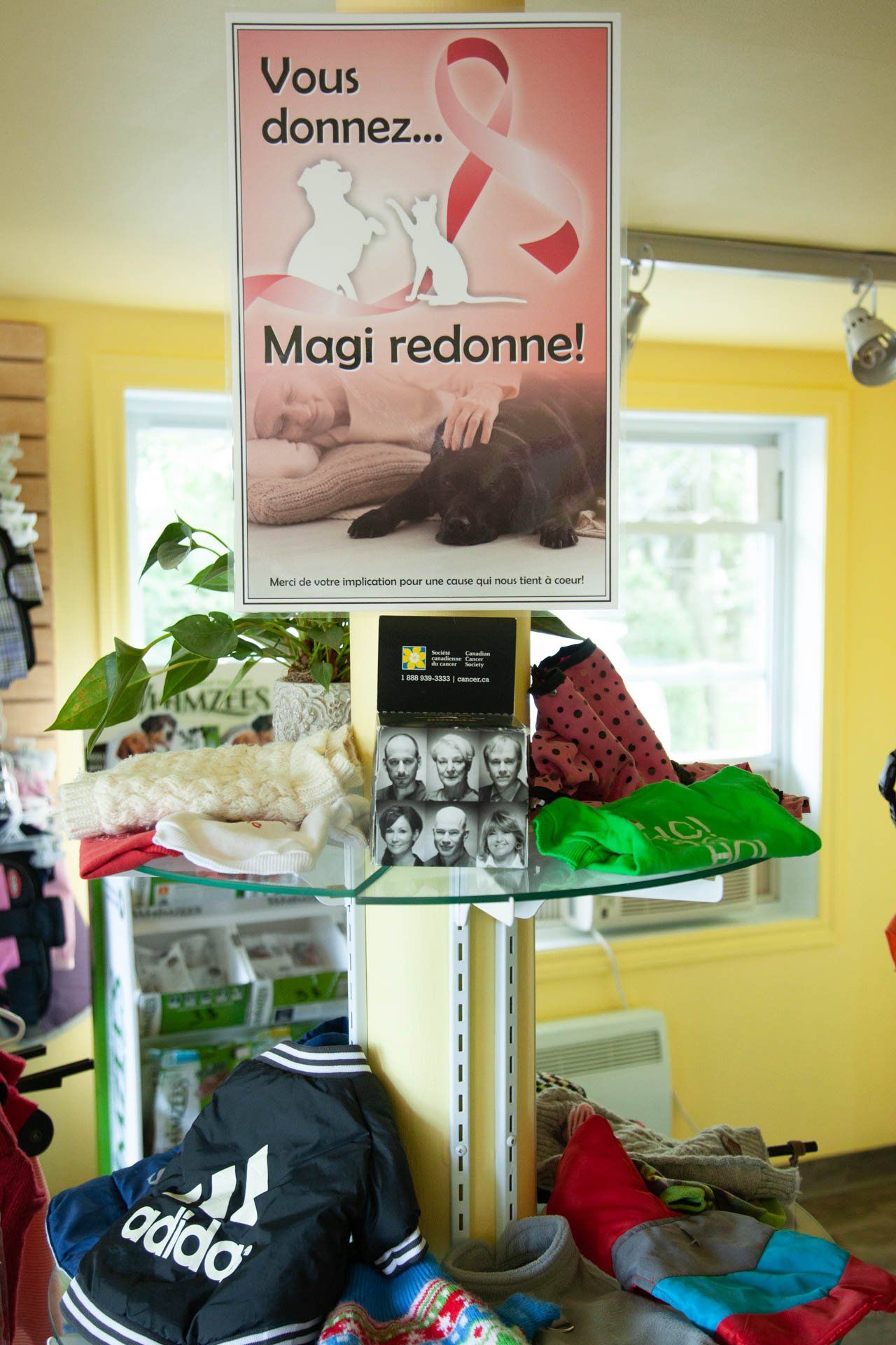 C’est pourquoi la boutique dispose d’un espace nommé " Vous donnez – Magi redonne", destiné à recueillir les dons des clients tel que des accessoires de leurs chats et de leurs chien qui ne leurs sert plus.